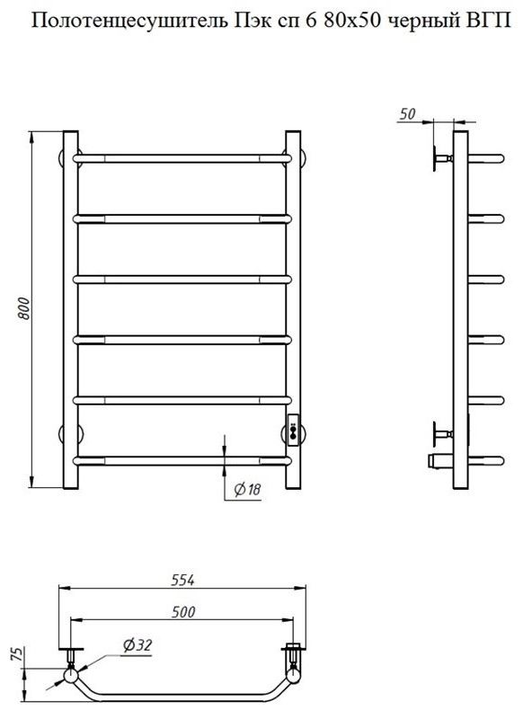 Электрический полотенцесушитель Тругор Пэк сп 6 80x50см чёрный Пэксп6/8050черныйВГП купить