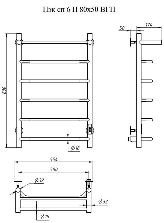 Электрический полотенцесушитель Тругор Пэк сп 6 П с полкой 80x50см чёрный Пэксп6П/8050черныйВГП