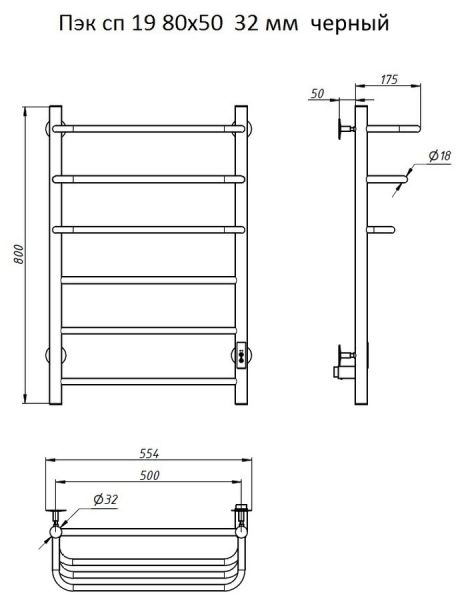 Электрический полотенцесушитель Тругор Пэксп19/8050 черный ВГП Пэк сп 19 80x50см чёрный