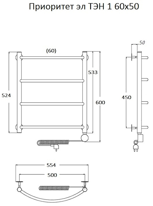 Электрический полотенцесушитель Тругор Приоритет 1 60x50см хром Приоритет1/элТЭН6050
