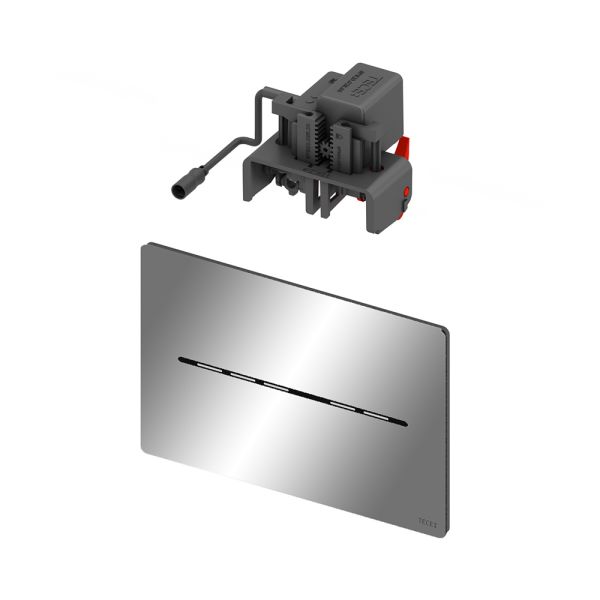Плоская панель из нержавеющей стали в комплекте с крепежными элементами и электроприводом смыва для систем двойного смыва.