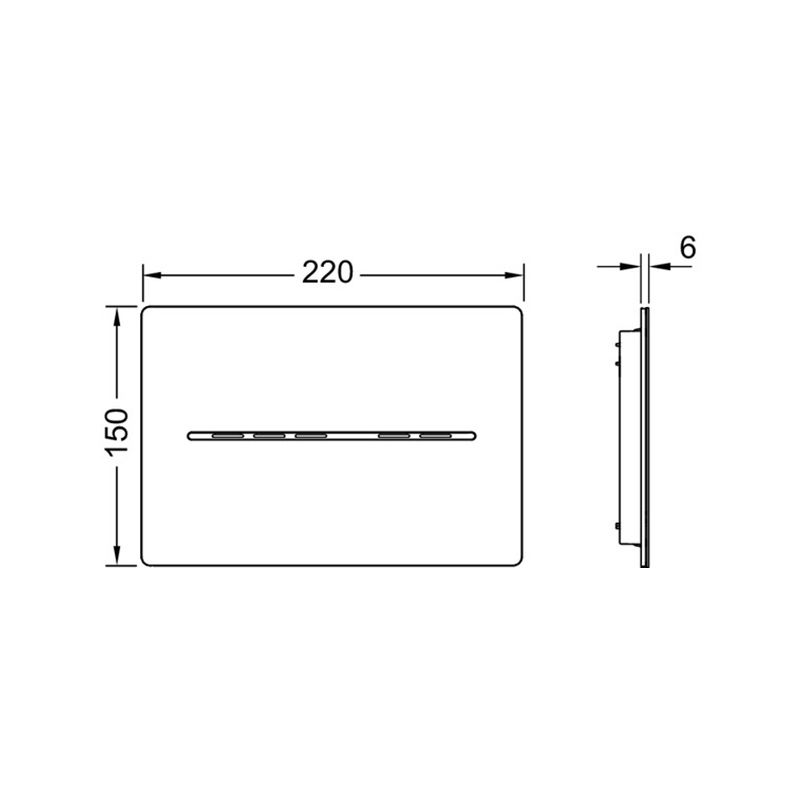 Электронная панель смыва с гигиеничной бесконтактной активацией смыва для стандартных бачков ТЕСЕ (глубиной 13 см) с фронтальной активацией и высотой высотой установки около 1 м (центр панели смыва). Плоская панель из нержавеющей стали в комплекте с крепежными элементами, герметичным отсеком для батарей для установки внутри бачка (4 батареи тип Mono/D/LR 20) и электроприводом смыва для систем двойного смыва. Совместима с контейнером для гигиенических таблеток.