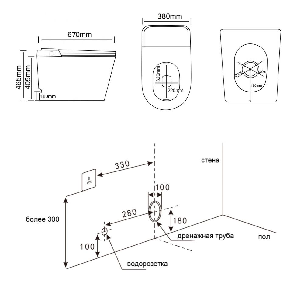 Тип:электронный унитаз