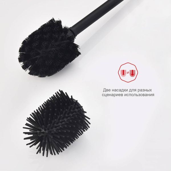 Raglo R300.10.06 Ершик для унитаза настенный с держателем. Форма округлая, цвет - черный, полуматовое покрытие. Крепление в комплекте, две насадки ершика.