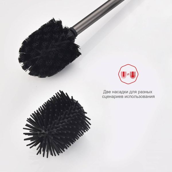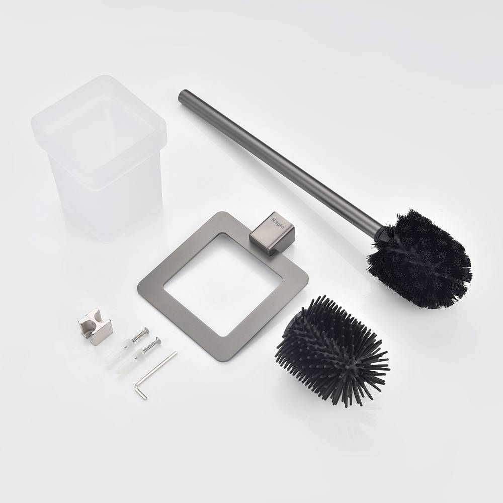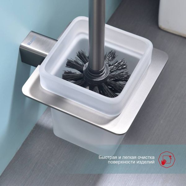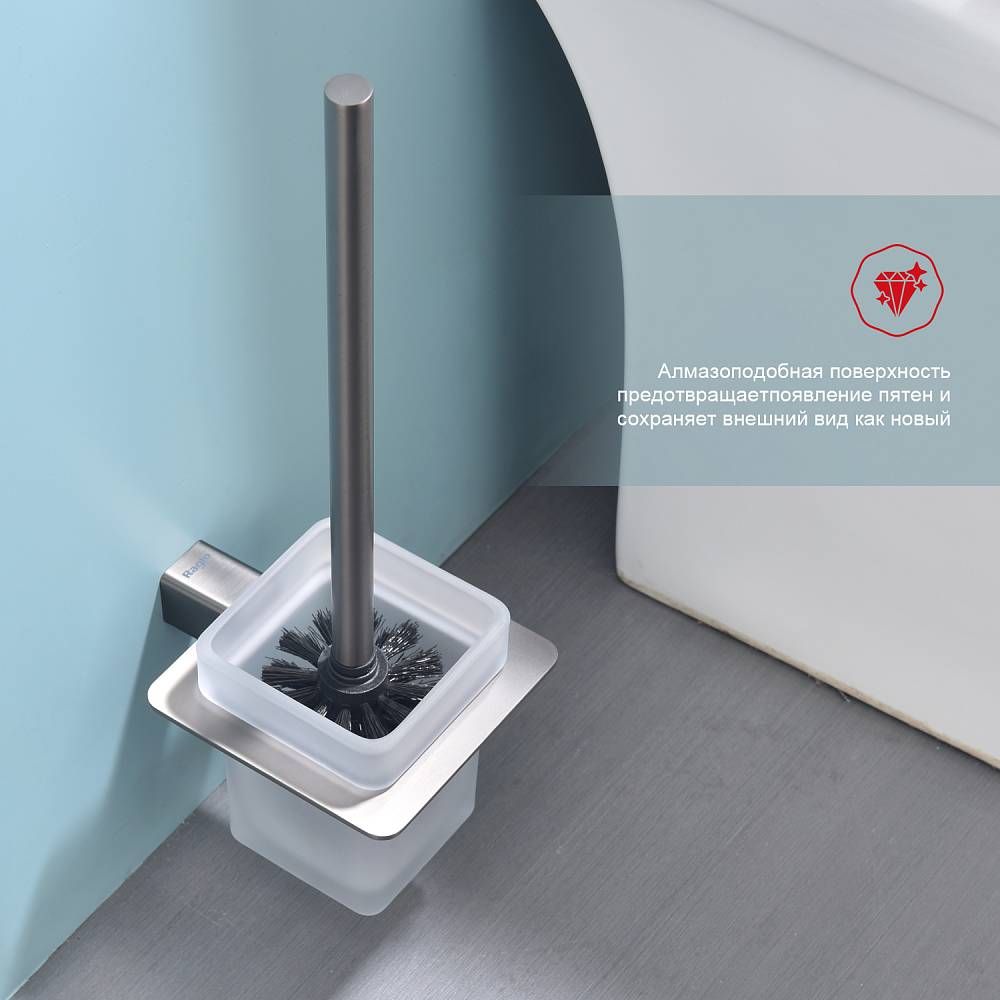 Raglo R301.10.09 Ершик для унитаза настенный с держателем. Форма квадратная, цвет - графит, полуматовое покрытие. Крепление в комплекте, в комплекте две насадки!