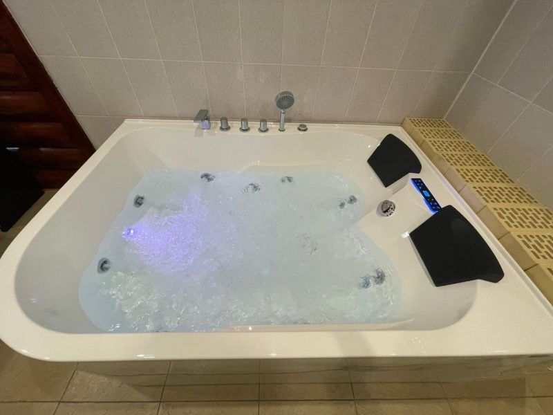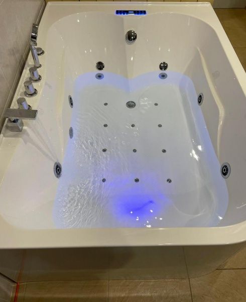 Двухместная ванна с гидромассажем Frank F152R правосторонняя, асимметричная с аэро- и гидромассажем. В боковой стенке установлен многоцветный подводный фонарь. Также ванна снабжена системой дезинфекции. Форсунки раположены в ванне с учётом эргономики тела и способствуют максимальному охвату поверхности тела при работе аэро- и гидромассажных двигателей. В ванне 2 рядом расположенных лежачих места. МОДЕЛЬ F152R правая
