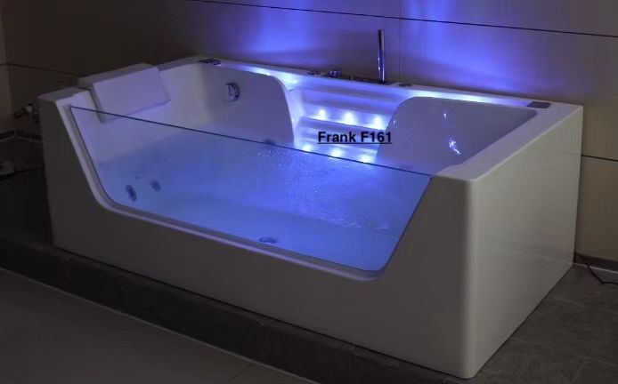 Погрузись в атмосферу удовольствия и расслабления!Все гидромассажные ванны Frank поставляются в максимальной комплектации и имеют множества функций. Ванна с гидромассажем Frank F161 пристенная, прямоугольная с аэромассажем,гидромассажем,турбомассажем. Также ванна снабжена системой дезинфекции. Форсунки расположены в ванне с учётом эргономики тела и способствуют максимальному охвату поверхности тела при работе аэро- и гидромассажных двигателей. Вся ванна сделана из литьевого акрила. Передний и боковые экраны сделаны единой конструкцией с ванной. Стоит система слива остатков воды из форсунков. Лицевая стенка изготовлена из 10мм закалённого стекла. Ванна имеет 2 каскадных налива воды с точечной подсветкой 5 цветов.ХарактеристикиМодель F161