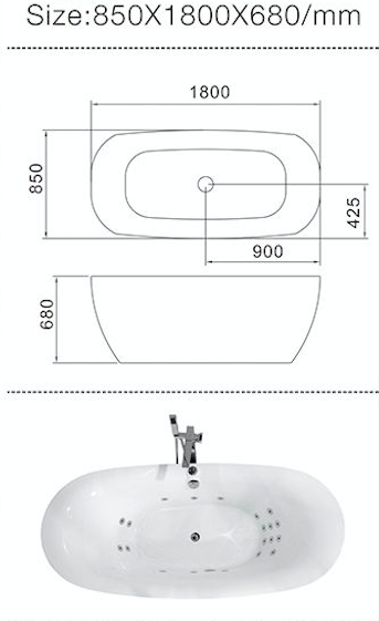 Гидромассажная ванна Frank F162 1800х850х680