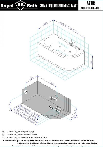 Акриловая ванна Royal Bath - идеальный выбор для создания атмосферы релакса и умиротворения, как в просторной в ванной комнате, так и в комнатном санузле. Основным преимуществом ванны из акрила считается её малый вес, высокая гигиеничность данного материала и низкая теплопроводность, долго сохраняющая комфортную температуру воды.Форма ванны Royal Bath замечательно подойдет к любому интерьерному решению, в различных вариантах размещения внутри ванной комнаты. Пристенная установка - это наиболее традиционный вид установки, а при использовании декоративного экрана пространство под ванной можно использовать как место хранения моющих средств. Оптимальная глубина позволяет принимать ванну с максимальным комфортом и полным расслаблением. Ванна Royal Bath выполнена со строгим соблюдением всех значительных элементов современного стиля.Благодаря тому, что родина бренда Royal Bath - Россия, можно смело быть уверенным в непревзойденном качестве и долговечности ванны, так как производство полностью соответствует стандартам качества. Акриловая ванна Royal Bath - это незаменимый, основной элемент любой ванной комнаты, без которого невозможно обойтись, ни в многоквартирном доме, ни в загородном коттедже.Комплектация гидромассажной ванны:- акриловая ванна Azur 140x80x60;- каркас сварной к ванне Azur 140;- панель к ванне Azur 140;- гидромассажная система на 5 форсунок;- слив-перелив для ванны полуавтомат 60 см.Ожидаемый срок поставки 7 дней.Обратите внимание: данная позиция поставляется под заказ! Товар поставляется по 100%-ной предоплате.Данный товар является заказным и имеет индивидуально-определенные свойства.