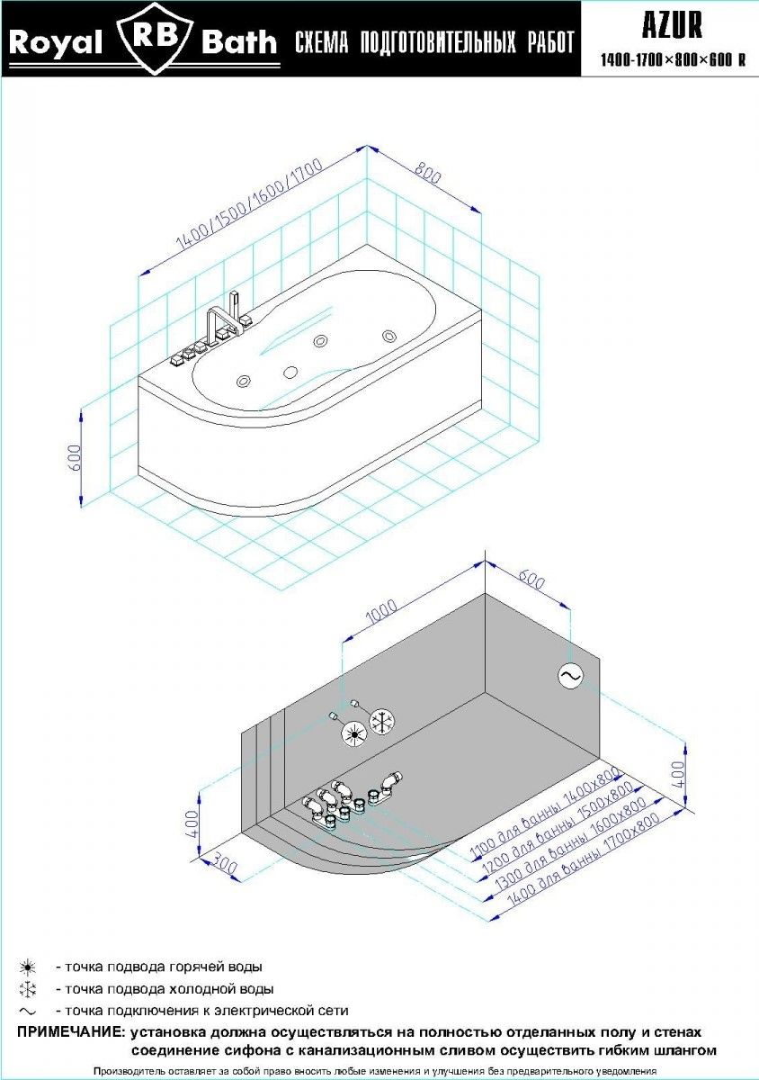 Акриловая ванна Royal Bath - идеальный выбор для создания атмосферы релакса и умиротворения, как в просторной в ванной комнате, так и в комнатном санузле. Основным преимуществом ванны из акрила считается её малый вес, высокая гигиеничность данного материала и низкая теплопроводность, долго сохраняющая комфортную температуру воды.Форма ванны Royal Bath замечательно подойдет к любому интерьерному решению, в различных вариантах размещения внутри ванной комнаты. Пристенная установка - это наиболее традиционный вид установки, а при использовании декоративного экрана пространство под ванной можно использовать как место хранения моющих средств. Оптимальная глубина позволяет принимать ванну с максимальным комфортом и полным расслаблением. Ванна Royal Bath выполнена со строгим соблюдением всех значительных элементов современного стиля.Благодаря тому, что родина бренда Royal Bath - Россия, можно смело быть уверенным в непревзойденном качестве и долговечности ванны, так как производство полностью соответствует стандартам качества. Акриловая ванна Royal Bath - это незаменимый, основной элемент любой ванной комнаты, без которого невозможно обойтись, ни в многоквартирном доме, ни в загородном коттедже.Комплектация гидромассажной ванны:- акриловая ванна Azur 140x80x60;- каркас сварной к ванне Azur 140;- панель к ванне Azur 140;- гидромассажная система на 5 форсунок;- слив-перелив для ванны полуавтомат 60 см.Ожидаемый срок поставки 7 дней.Обратите внимание: данная позиция поставляется под заказ! Товар поставляется по 100%-ной предоплате.Данный товар является заказным и имеет индивидуально-определенные свойства.