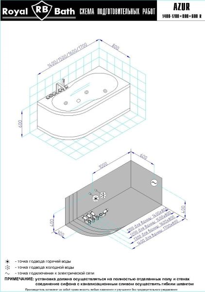 Акриловая ванна Royal Bath - идеальный выбор для создания атмосферы релакса и умиротворения, как в просторной в ванной комнате, так и в комнатном санузле. Основным преимуществом ванны из акрила считается её малый вес, высокая гигиеничность данного материала и низкая теплопроводность, долго сохраняющая комфортную температуру воды.Форма ванны Royal Bath замечательно подойдет к любому интерьерному решению, в различных вариантах размещения внутри ванной комнаты. Пристенная установка - это наиболее традиционный вид установки, а при использовании декоративного экрана пространство под ванной можно использовать как место хранения моющих средств. Оптимальная глубина позволяет принимать ванну с максимальным комфортом и полным расслаблением. Ванна Royal Bath выполнена со строгим соблюдением всех значительных элементов современного стиля.Благодаря тому, что родина бренда Royal Bath - Россия, можно смело быть уверенным в непревзойденном качестве и долговечности ванны, так как производство полностью соответствует стандартам качества. Акриловая ванна Royal Bath - это незаменимый, основной элемент любой ванной комнаты, без которого невозможно обойтись, ни в многоквартирном доме, ни в загородном коттедже.Комплектация гидромассажной ванны:- акриловая ванна Azur 170x80x60;- каркас сварной к ванне Azur 170;- панель к ванне Azur 170;- гидромассажная система на 5 форсунок;- слив-перелив для ванны полуавтомат 60 см.Ожидаемый срок поставки 7 дней.Обратите внимание: данная позиция поставляется под заказ! Товар поставляется по 100%-ной предоплате.Данный товар является заказным и имеет индивидуально-определенные свойства.