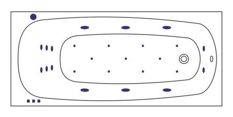 - Аэромассажная система (11 форсунок AERO-JET) с функцией регулировки интенсивности массажа;