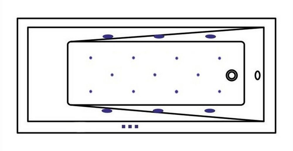 - Аэромассажная система (11 форсунок AERO-JET) с функцией регулировки интенсивности массажа;