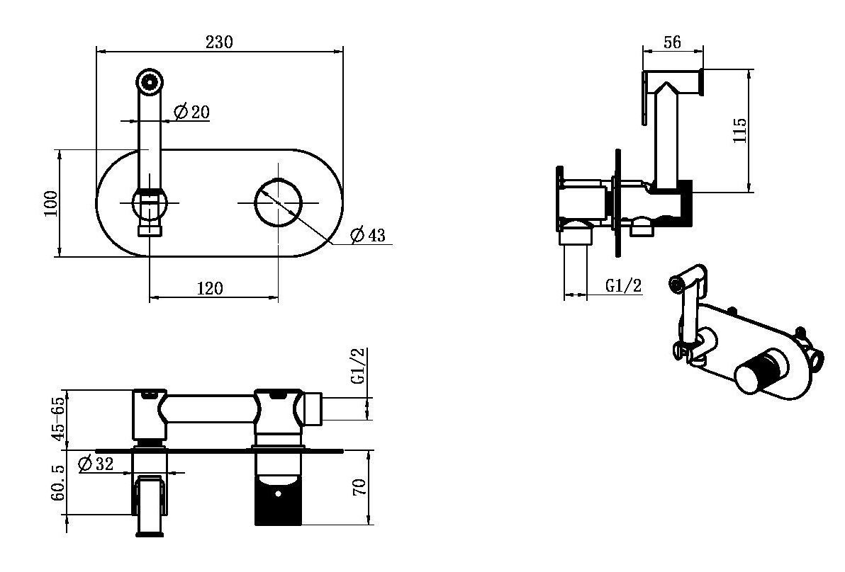 Гигиенический душ со смесителем Boheme Stick 127-GG.2.Характеристики:Цвет: золото.