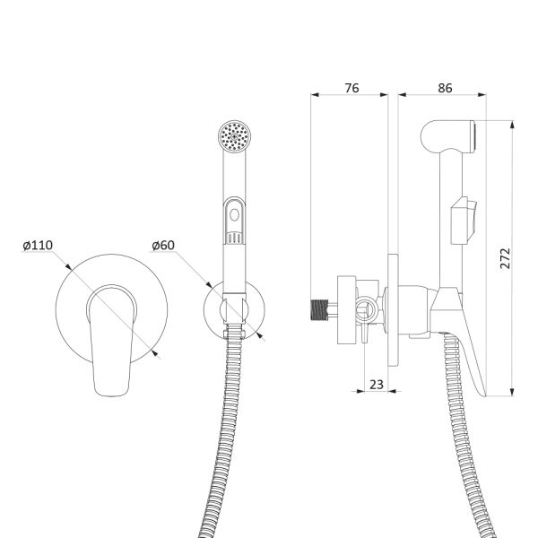 Гигиенический душ Damixa Jupiter 777510001 со смесителем, С ВНУТРЕННЕЙ ЧАСТЬЮ, хром