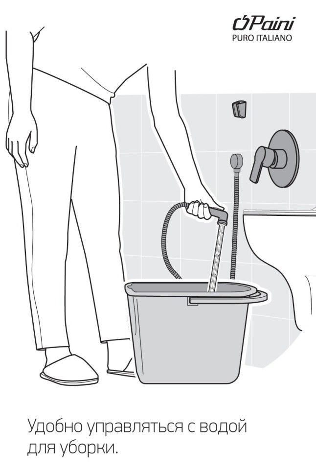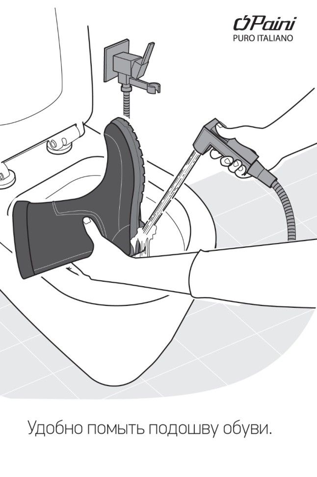 • С помощью гигиенического душа со смесителем очень легко ополоснуть подошву обуви, горшок ребенка, лоток для животного.