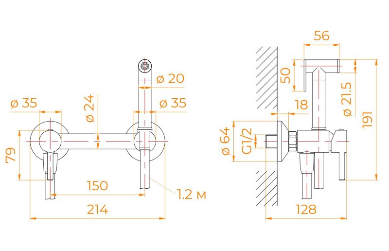 Гигиенический душ — компактная альтернатива биде. Если у вас маленький туалет, где нет возможности установить еще одну сантехническую конструкцию, на выручку приходит данный аксессуар. Он выполнен в виде душевой лейки с клавишей (кнопкой) и шланга, которая фиксируется на смесителе. Смеситель состоит из высококачественной латуни, монтируется на стену накладным способом. Устанавливается рядом с унитазом и помогает поддерживать личную гигиену.Изделие оснащено двумя рычагами — для регулировки температуры на смесители и подачи воды на душевой лейки. Отличное решение для людей, которые по каким-то причинам не могут пользоваться туалетной бумагой или хотят повысить качество личной гигиены. Вода обеспечивает максимально качественное и деликатное очищение, которое не может обеспечить ни один другой материал. Также удобно использовать для мойки унитаза, детских горшков, кошачьих лотков.