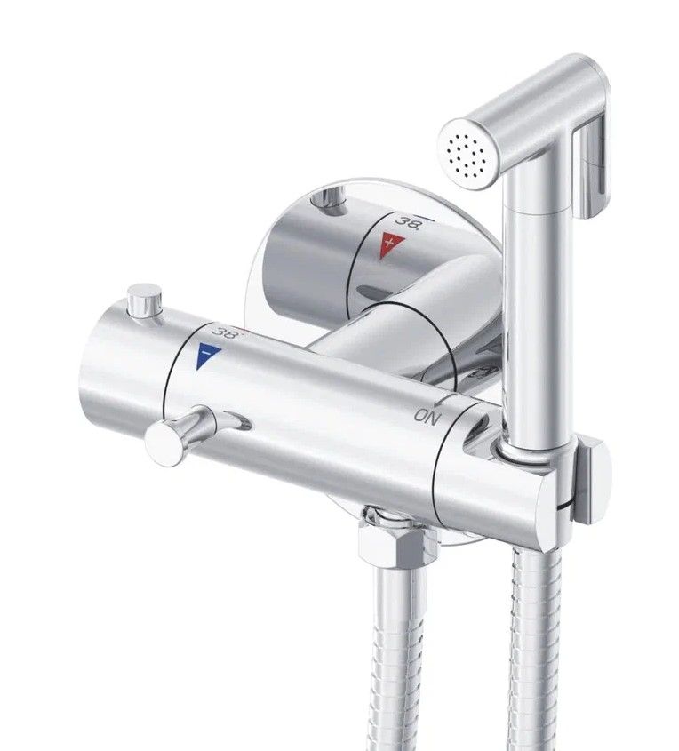 Гигиенический душ с термостатом Rose R915, хром.Управление: термостат.Материал: латунь.Монтаж: внутренний (скрытый).На корпусе гигиенического душа расположен крючок для полотенца.