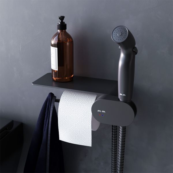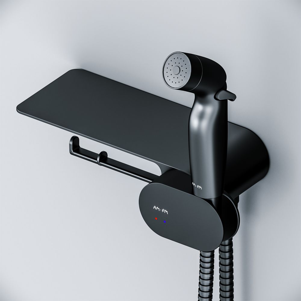 Гигиенический душ со смесителем AM.PM Like F0202622 с полкой и держателем туалетной бумаги.Характеристики:Цвет: черный.