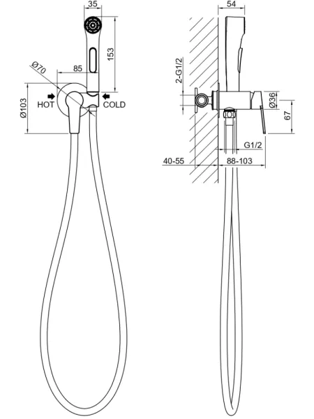 Гигиеническая лейка оснащена нажимным механизмом для остановки потока воды