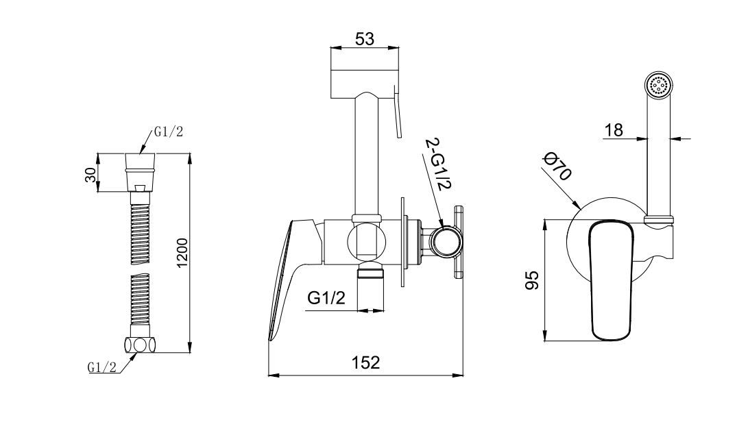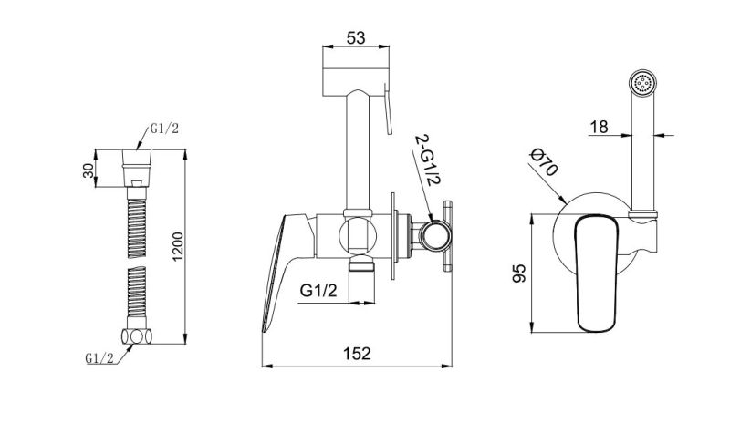 Гигиенический душ со смесителем Aquatek Вега AQ1019BGM оружейная стальРазмеры