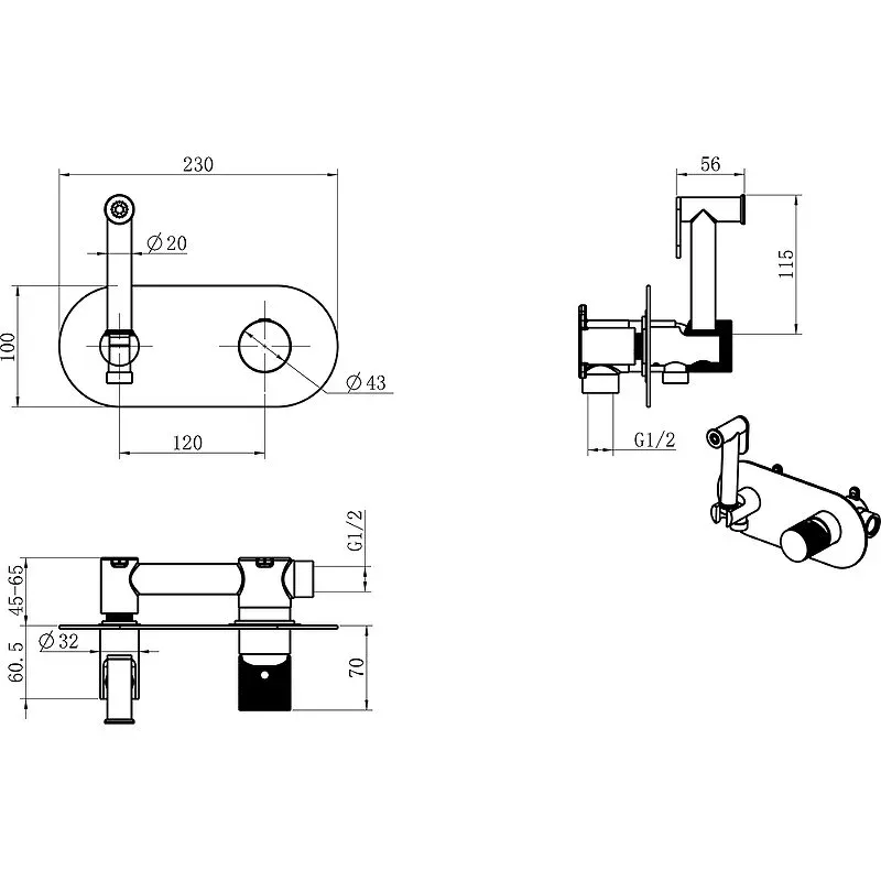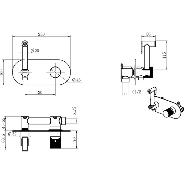 Гигиенический душ Boheme Stick, со смесителем,