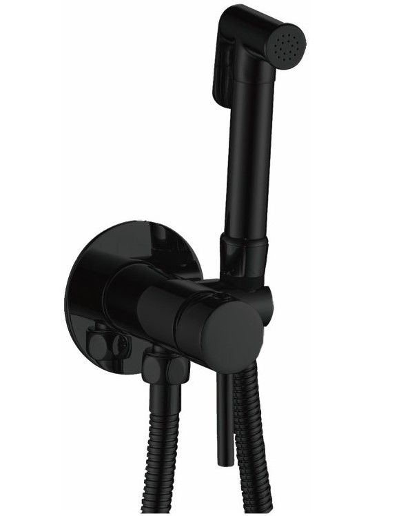 Гигиенический душ со смесителем бренда Haiba.Цвет: черный.В комплект входят: держатель для гигиенической лейки, лейка, шланг.Керамический картридж 30 мм.Металлическая рукоятка.Душевой шланг 1 метр.Душевая лейка на 1 режим.