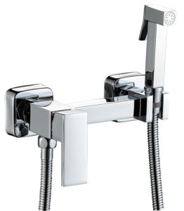 Гигиенический душ со смесителем бренда Haiba.Цвет: хром.В комплект входят: держатель для гигиенической лейки, лейка, шланг, эксцентрики.Керамический картридж 30 мм.Металлическая рукоятка.Душевой шланг 1 метр.Душевая лейка на 1 режим.