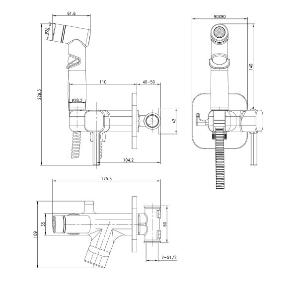 - Аксессуары в комплекте: лейка гигиенического душа с регулятором напора воды, душевой шланг 1,2 м (Turn-Free)