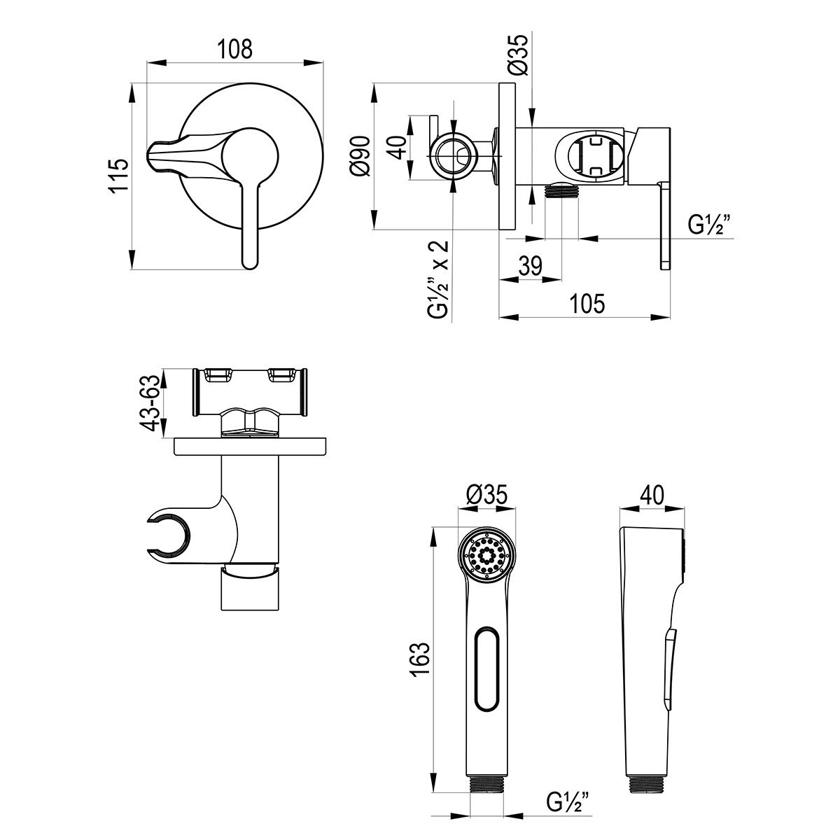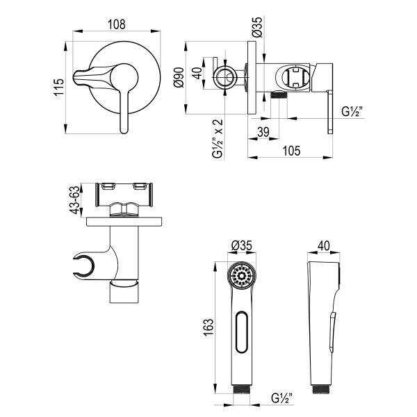 • Аксессуары в комплекте: лейка гигиенического душа с нажимным механизмом, душевой шланг 1,2 м