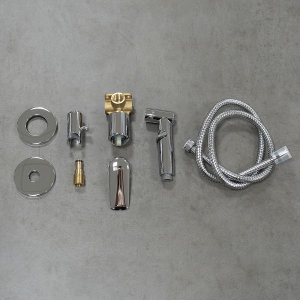 • Аксессуары в комплекте: лейка гигиенического душа с регулятором напора воды, подключение для душевого шланга с креплением для лейки, душевой шланг 1,2 м