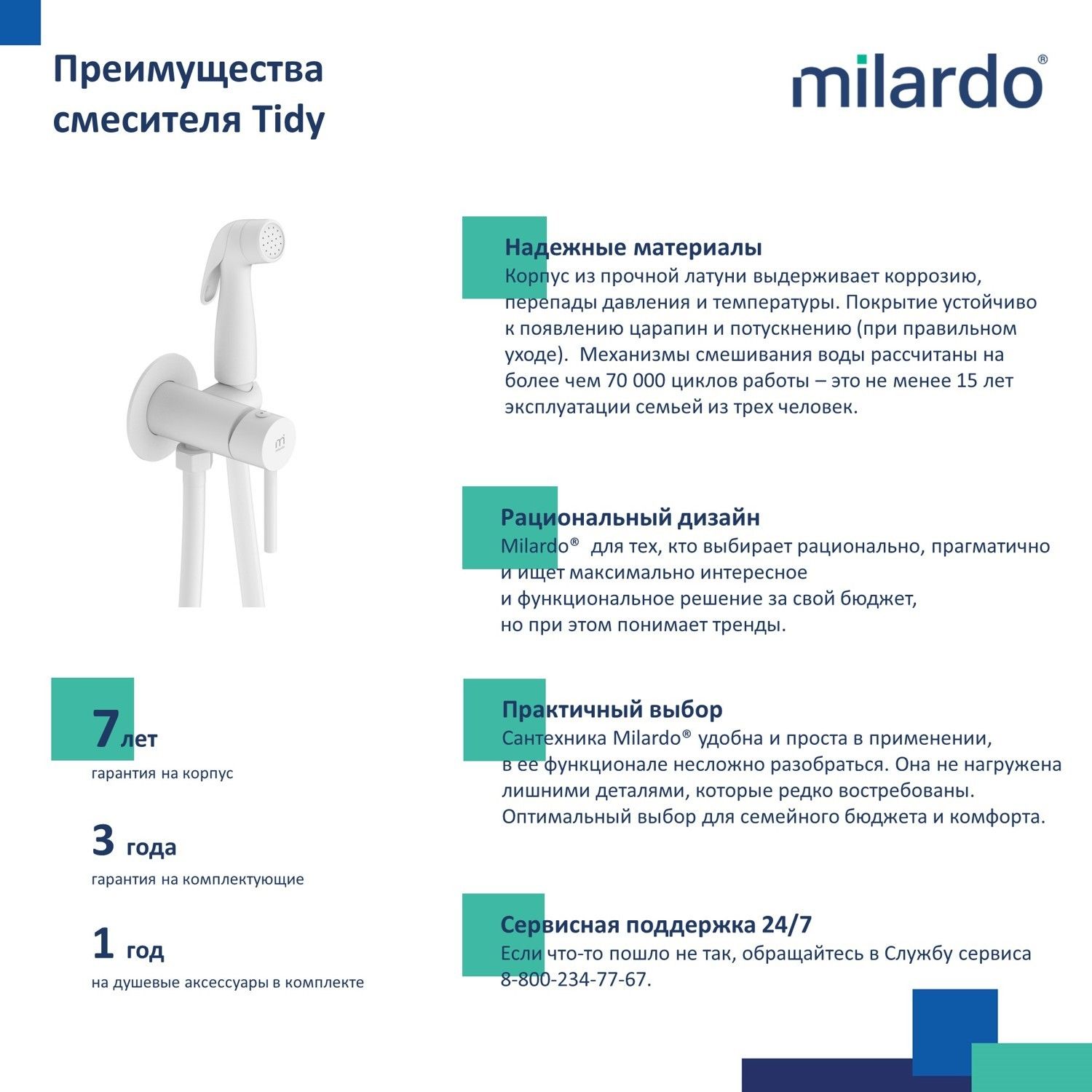 Гигиенический душ со смесителем Milardo Tidy белый 001WTR0M08 купить