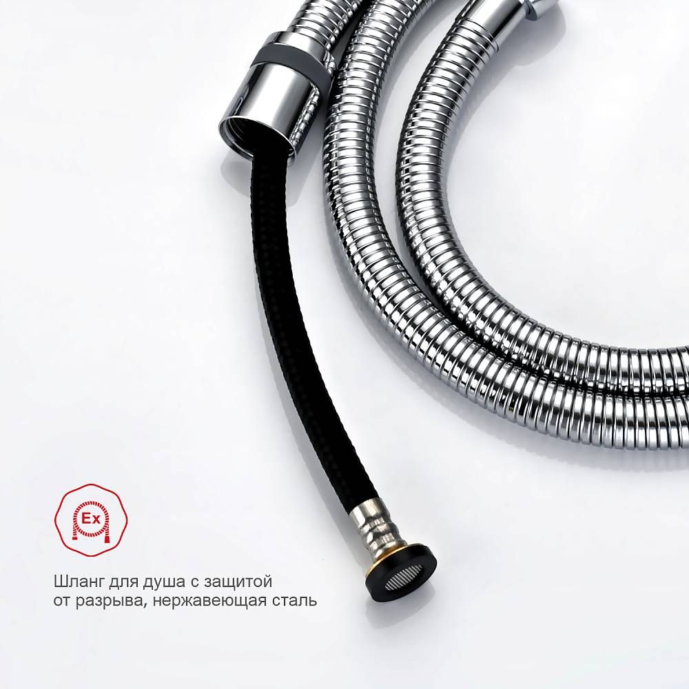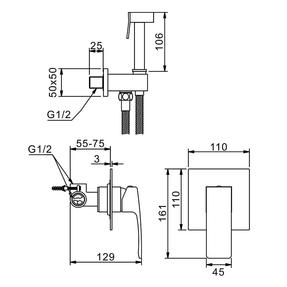 Качественный и современный смеситель с гигиеническим душем R01.53, одна рукоять для того, чтобы регулировать напор воды размещение раздельное. Смеситель для биде устанавливается прямо внутрь стены, что позволит скрыть функциональные элементы, спрятать некоторые элементы монтажа. Латунная душевая лейка работает в одном режиме. Высокопрочный душевой шланг 1200 мм в оплетке двойного вальцевания с трубкой из синтетического каучука вращающийся на 360 градусов. Основной материал корпуса - латунь, проверенный временем материал, который обеспечивает идеальное напыление хромированного покрытия. Квадратная форма душ для биде делает его оригинальным и аутентичным.