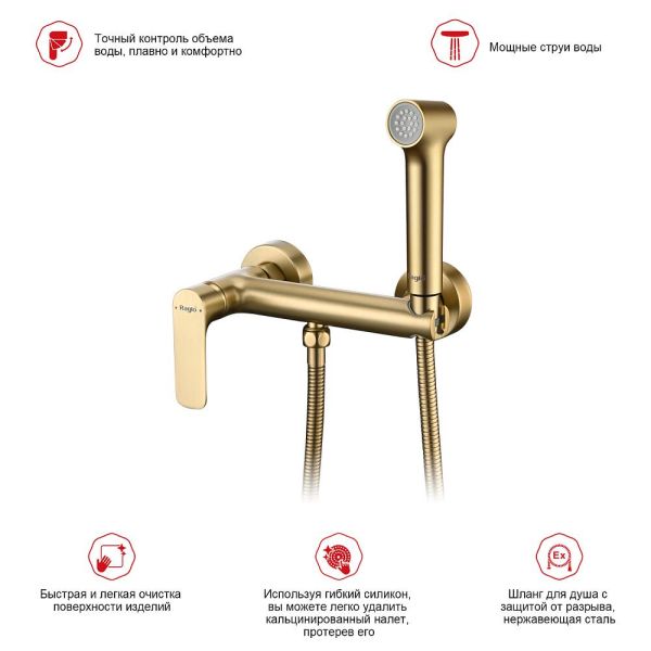 Гигиенический душ со смесителем Raglo R03.51.03, сатин золотой
