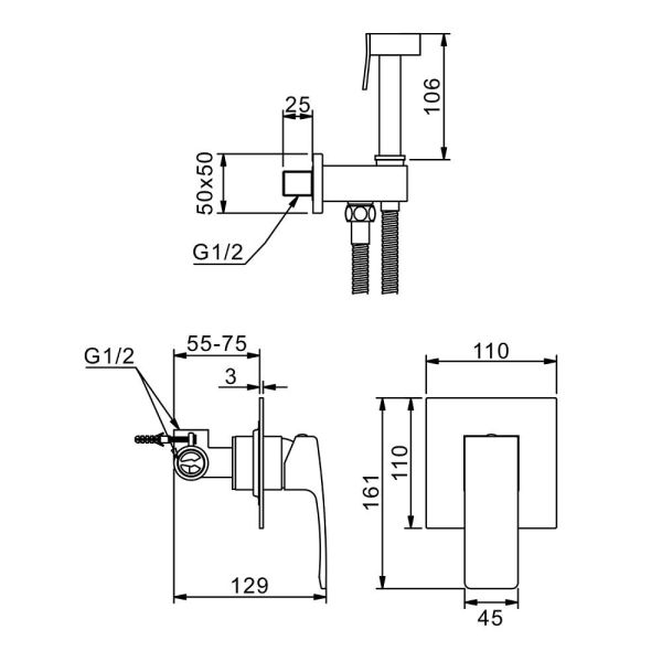 Гигиенический душ со смесителем встраиваемый Raglo R03.53, хром