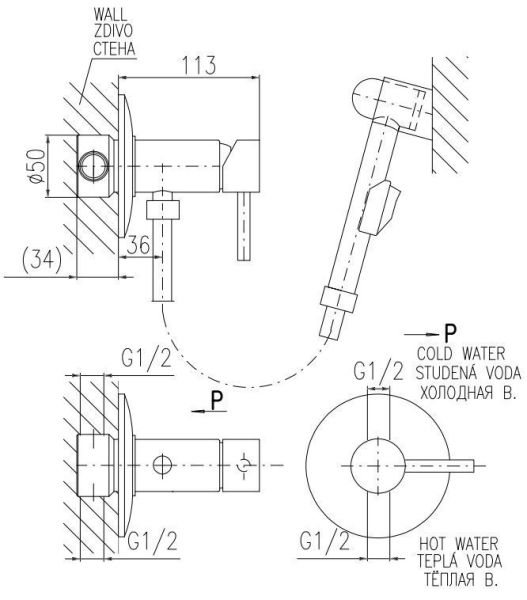 Гигиенический душ со смесителем Rav Slezak Seina SE947/1 хром купить