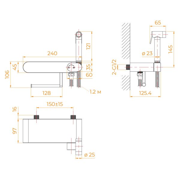 Установка гигиенического душа со смесителем — навесная на внешнюю часть стены. Сантехническое оборудование требует заранее запроектированного месторасположения. Требование к установке: месторасположение должно быть запланировано заранее, чтобы сделать подводку труб на этапе черновой отделки помещения. Рекомендованная высота установки 50 см от пола. В данном изделии смеситель имеет два монтажных входа с установкой на эксцентриках. Желательно при расчете установочного места правильно запроектировать его размещение согласно желаниям будущих пользователей, учитывая их особенности жизни и удобство пользования.Рабочее давление воды: 3-4 бар.Максимальное давление воды: 5 бар.При установке смесителя с гигиеническим душем рекомендуем воспользоваться услугами нашей монтажной группы RGW для гарантии долговечного использования.