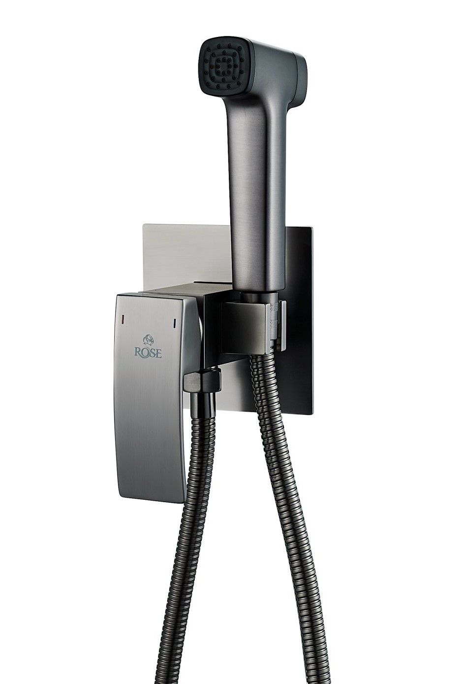 Гигиенический душ со смесителем Rose R1505T-2, оружейная сталь.Материал: латунь.Гарантия: 5 лет.Длина шланга: 100 см.