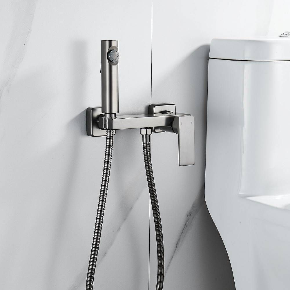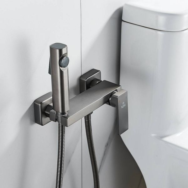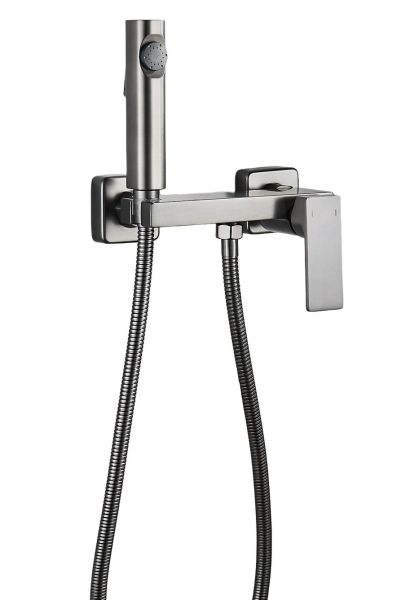 Гигиенический душ со смесителем Rose R1805T-1, пепельный.Управление: рычажное.Материал: латунь.Монтаж: настенный.