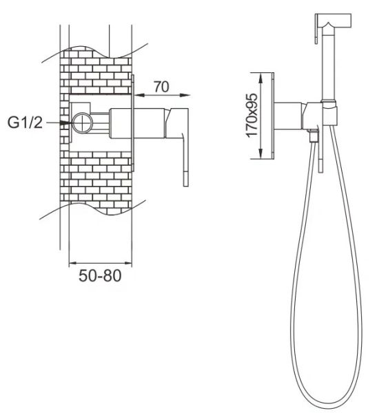 Гигиенический душ со смесителем Rose R205, хром.Управление: рычажное.Материал: латунь.Монтаж: внутренний (скрытый).