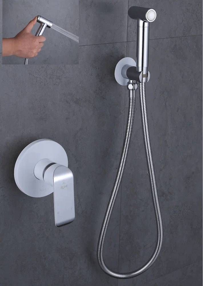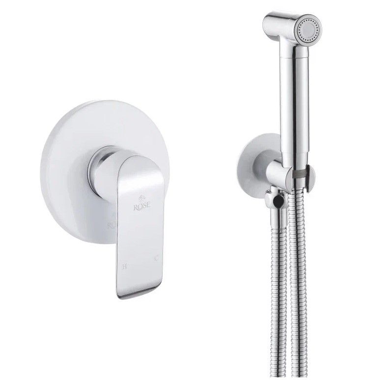 Гигиенический душ со смесителем Rose R2105F, белый/хром.Управление: рычажное.Материал: латунь.Монтаж: внутренний (скрытый).