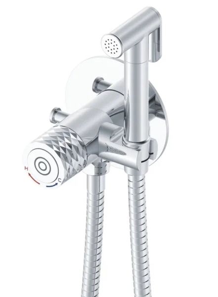 Гигиенический душ со смесителем Rose R225, хром.Управление: нажимное (порционное).Материал: латунь.Монтаж: внутренний (скрытый).На корпусе гигиенического душа расположен крючок для полотенца.