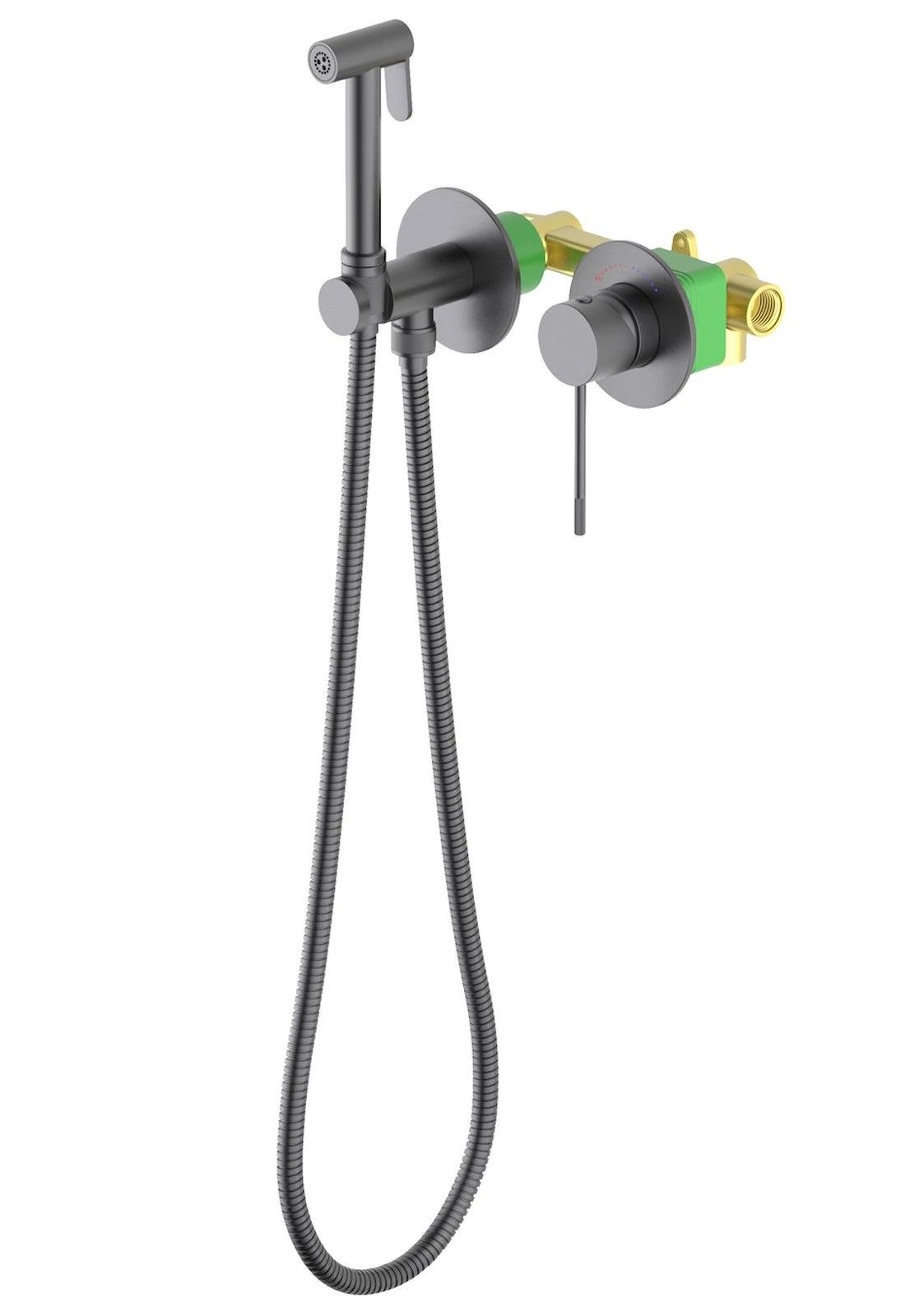 "Черное золото"- неизменно эффектный и привлекающий внимание цвет. Приглушенный мягкий оттенок черного, подчеркнет форму раковины или цвет мебели. Встраиваемый смеситель с гигиеническим душем Timo Saona 2339 предназначен для монтажа в твердой или полой стене. Термокартридж с защитой от ожогов ограничивает максимальную температуру воды 45 С° повышая комфортность и безопасность использования. Основной задачей данной модели является: экономия места (установка чаши для биде занимает достаточно много места и к тому же затратнее). Все коммуникации, крепления и механизмы спрятаны в стену и закрыты декоративными накладками, снаружи находится только рычаг управления смесителем и держатель гигиенической лейки с подключеним шланга, такая модель отлично сочетается с инсталляцией для унитаза. Длины шланга 1,2 метра хватает для решения гигиенических задач. Можно также использовать например, для мытья собаки после прогулки или наполнения ведра воды и т.д. Сложностей монтажа не возникает при установке смесителя опытным сантехником. Внимательно изучите инструкцию по монтажу и эксплуатации. Цвет "черное золото" не капризен в уходе, на нем менее заметны загрязнения и мелкие царапины.