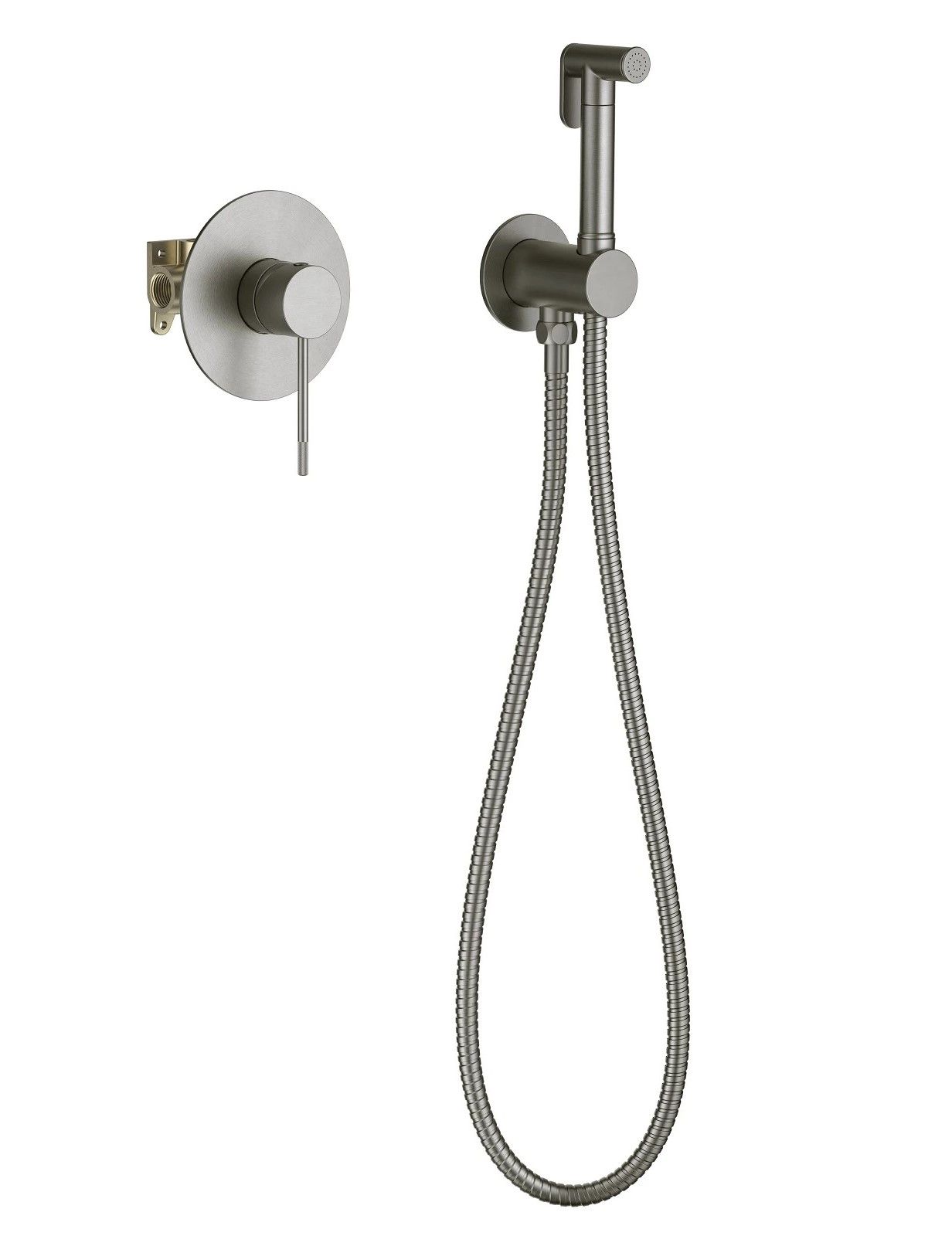 Смеситель встроенный с гигиеническим душем Timo Saona (2389/18SM) В комплект входит: Смеситель скрытого монтажа- 1 шт. Декоративная накладка смесителя (латунная) - 1 шт. Ручка управления смесителем - 1 шт. Шланг душа 1,2 м - 1 шт. Держатель лейки (латунный) с подключением шланга - 1 шт. Гигиеническая лейка (пластик) - 1 шт. Инструкция - 1 шт.