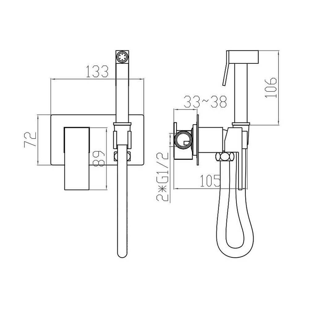 S97.52.06 Встраиваемый гигиенический душ, выполнен из латуни в черном цвете, шланг 120 см и лейка в комплекте.