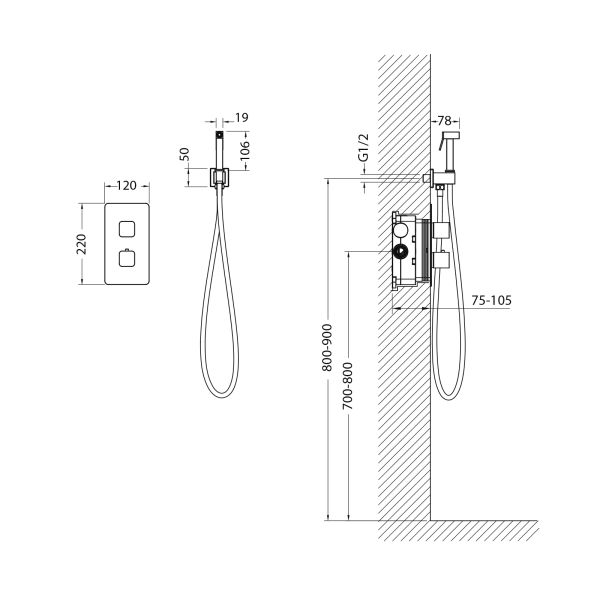 - Отвод из стены - держатель лейки (латунный) с подключением шланга душа - 1 шт.