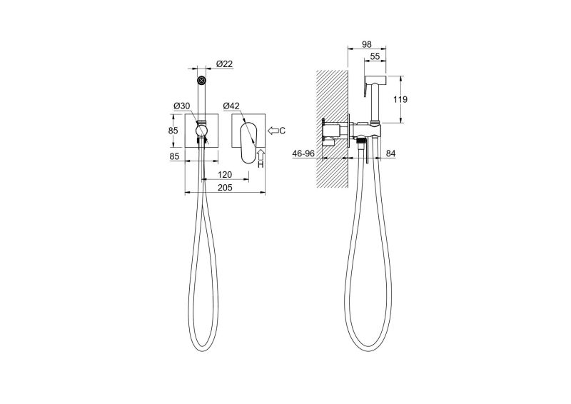 Гигиенический ручной душ Aquatek Оберон AQ1220CR хромДлина, см: 20,5
