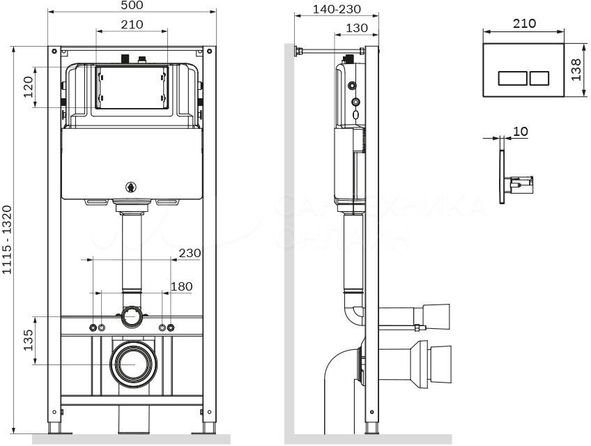 Вертикальные ребра жесткости в конструкции рамы – дополнительная опора в месте давления керамики на стену. Благодаря им инсталляция более универсальная и подходит для унитазов любых размеров, включая унитазы с небольшой контакной поверхностью. Нет необходимости докупать дополнительные аксессуары для монтажа таких унитазов