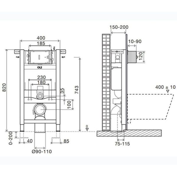 Характеристики: совместима со всеми видами подвесных унитазов; подходит для легких и несущих стен; поставляется с металлическими креплениями; рама испытана нагрузкой 400 кг; быстрая и легкая установка; регулируется по высоте от 0 до 200 мм; фановый отвод для слива, регулируемый по глубине; низкая установка.