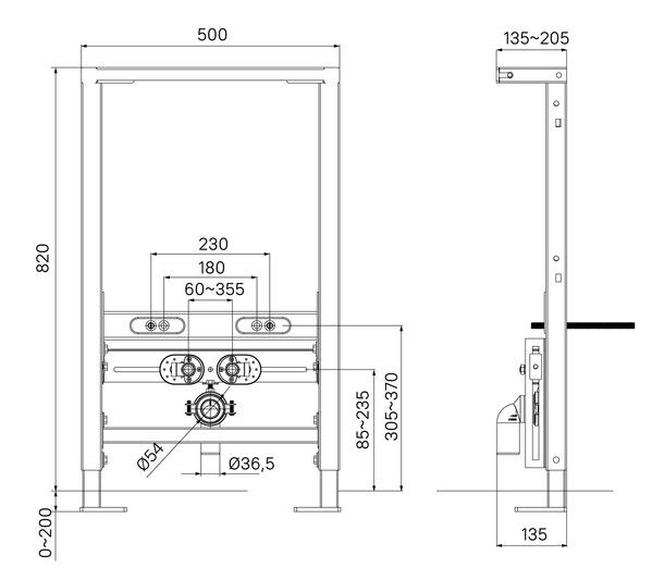 Инсталляция предназначена для крепления подвесного или напольного биде. Регулируется по высоте (0-200 мм) и глубине (до 70 мм), что позволяет удобно подстроить ее под условия конкретного санузла. Имеет все необходимое для простого и быстрого монтажа.